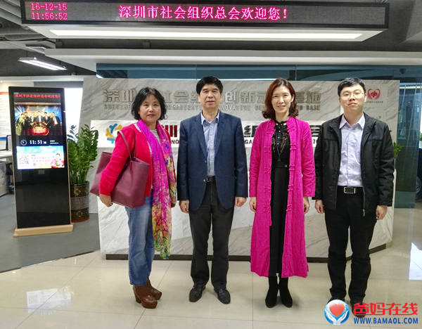 2016年12月16日上午,爸媽在線董事局副主席、副總裁楊萍,應邀前往深圳市社會組織總會開展交流活動。爸媽在線深圳中心副主任王麗平陪同參加。爸媽在線深圳市心身健康服務中心于2015年7月注冊社會組織機構后,一